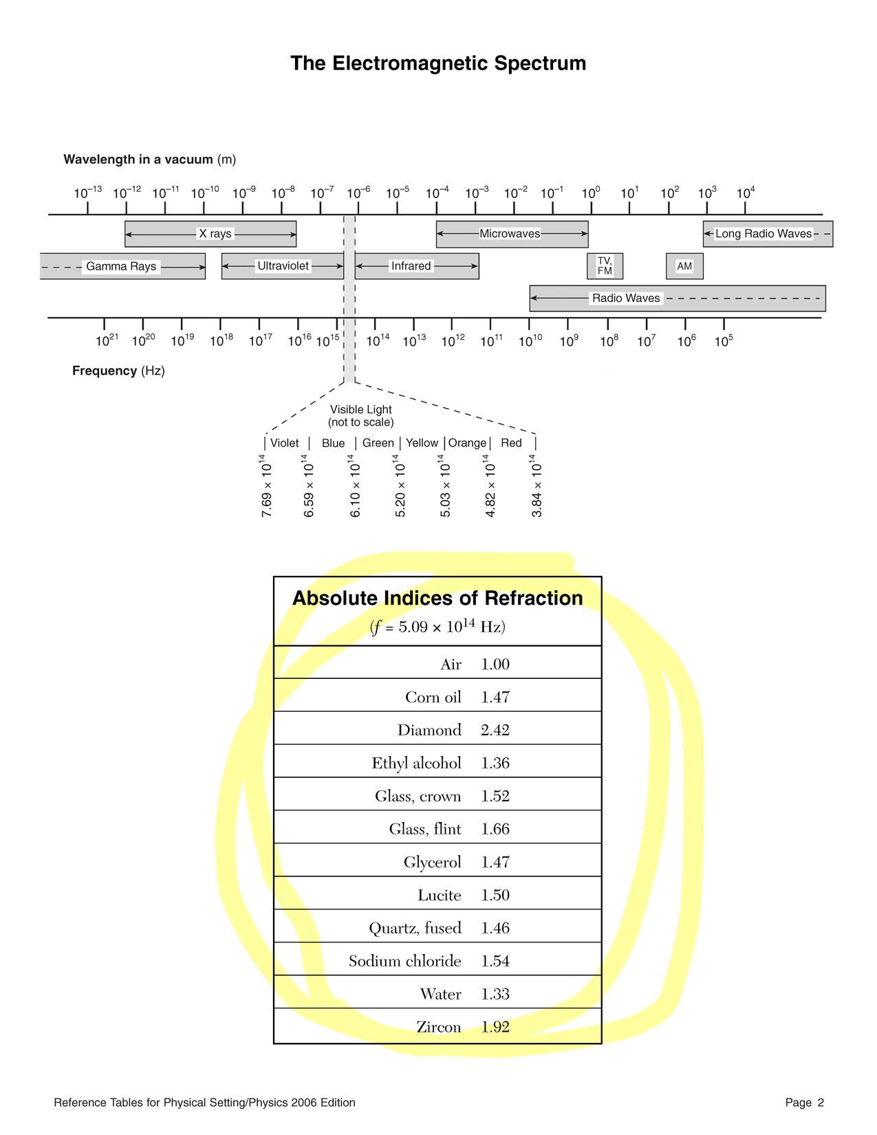 - Using the Reference Tables for Physical Setting/PHYSICS, identify a likely material if the speed of light (v) in the material is the following fraction of the speed of light (c) in a vacuum…